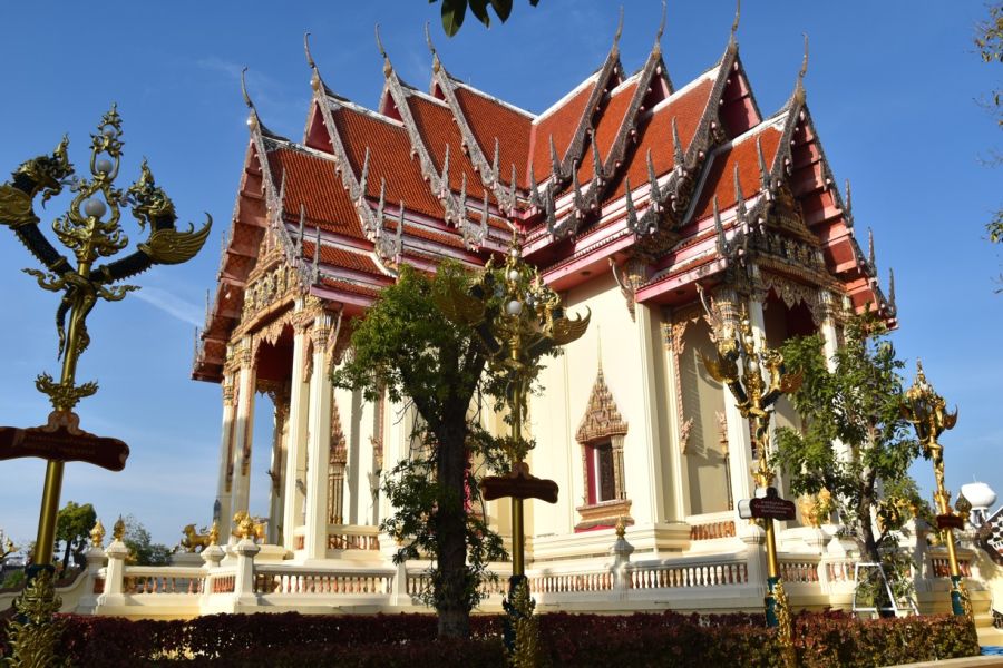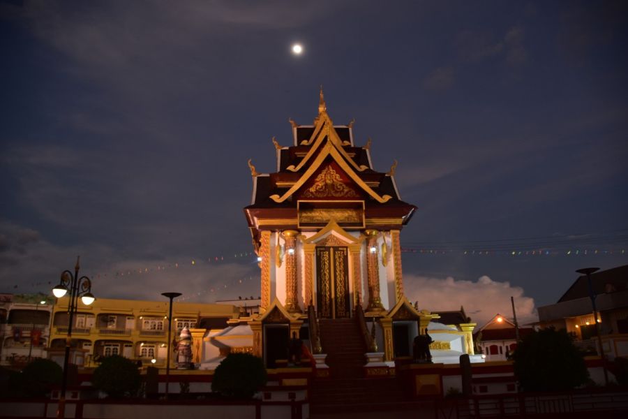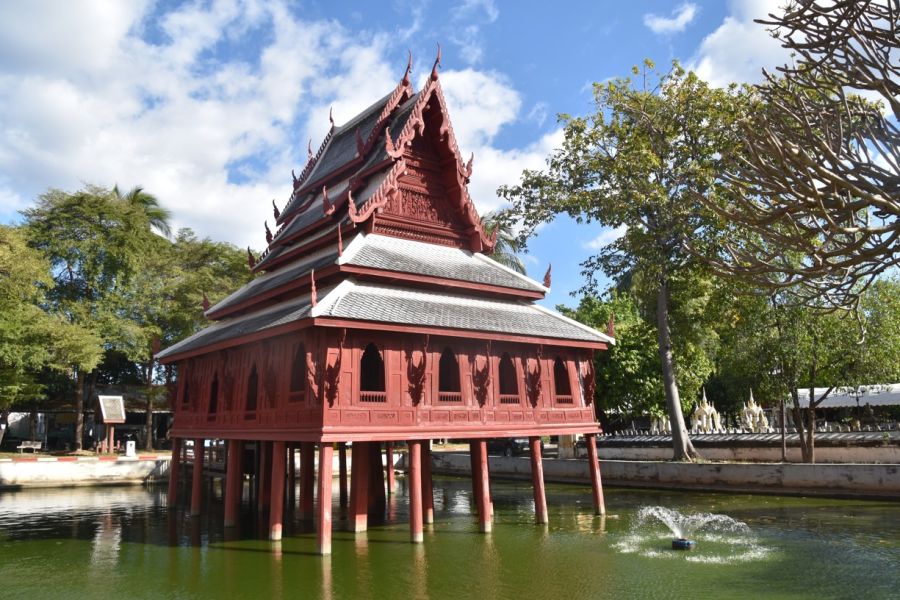 přejezd do Ubon Ratchathani - centrum u řeky Mun, chám Wat Thung Si Muang s knihovnou z týkového dřeva nad vodní nádrží, velmi dobré Ubonské národní muzeum se skvělými sbírkami, noční přejezd pohodlným busem na pobřeží Thajského zálivu