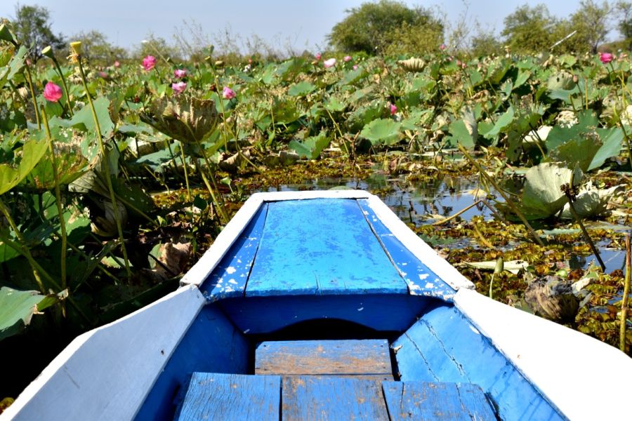 Nong Khai - park buddhistických a hinduistických skulptur Sala Kaew Ku (Wat Khaek), Wat Pho Chai, Thale Bua Daeng - výlet loďkou po jezeře porostlém červenými lekníny a růžovými lotosy, nocleh v Udon Thani