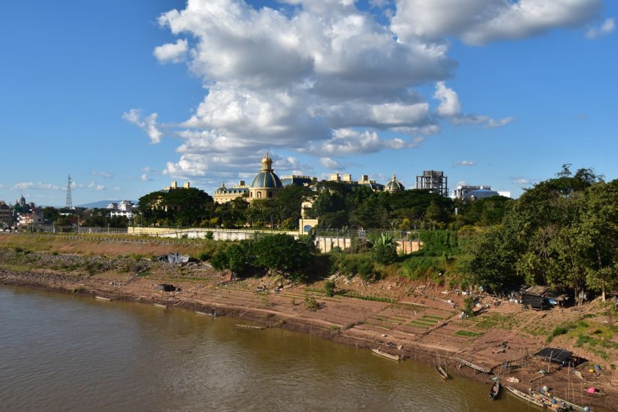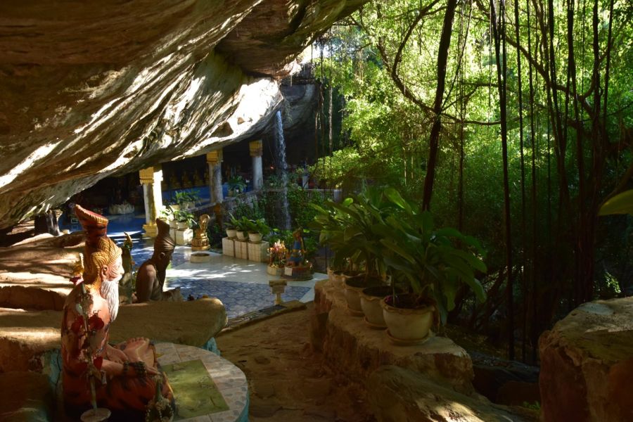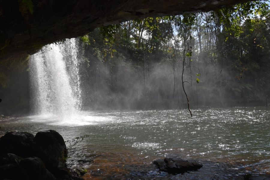 Khong Chiam - městečko na soutoku řeky Mekong a Mun, Wat Tham Heo Sin Chai s vodopádem v areálu, přejezd na hranici do Chong Mek a přechod do Laosu, Pakse - zal. Francouzi r. 1905, procházka městem, Wat Luang, Wat Tham Fai, budova čínské společnosti
