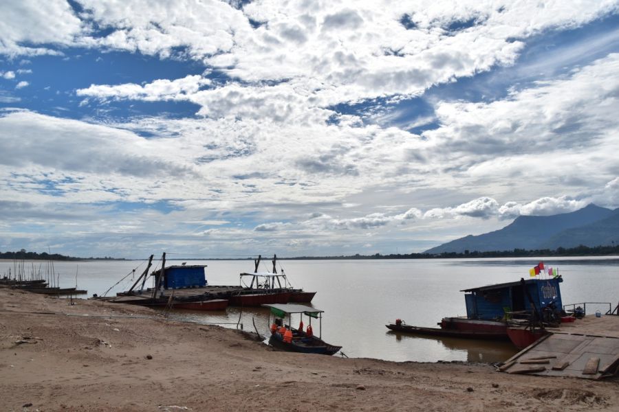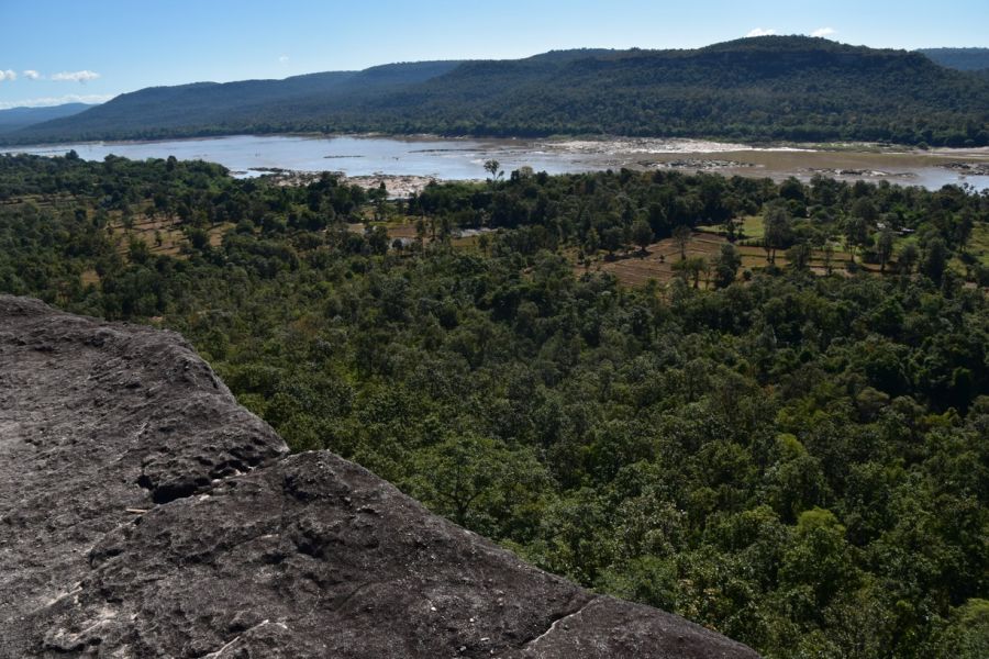 přejezd, Mukdahan - v okolí se nachází snad nejhezčí úsek krajiny na středním Mekongu, (na druhé straně řeky leží druhé největší město Laosu – Sawannakhet), vyhlídka na krajinu z kopce s Watem Phu Manorom, přejezd do NP Pha Taem - prehistorické skalní malby na stěně útesu staré cca 4000 let (délka 170 m, lapadlové sítě na ryby, divoká zvířata, obři, hranaté lidské postavy, pás otisků dlaní), skalní hřib Sao Chaliang, Khong Chiam
