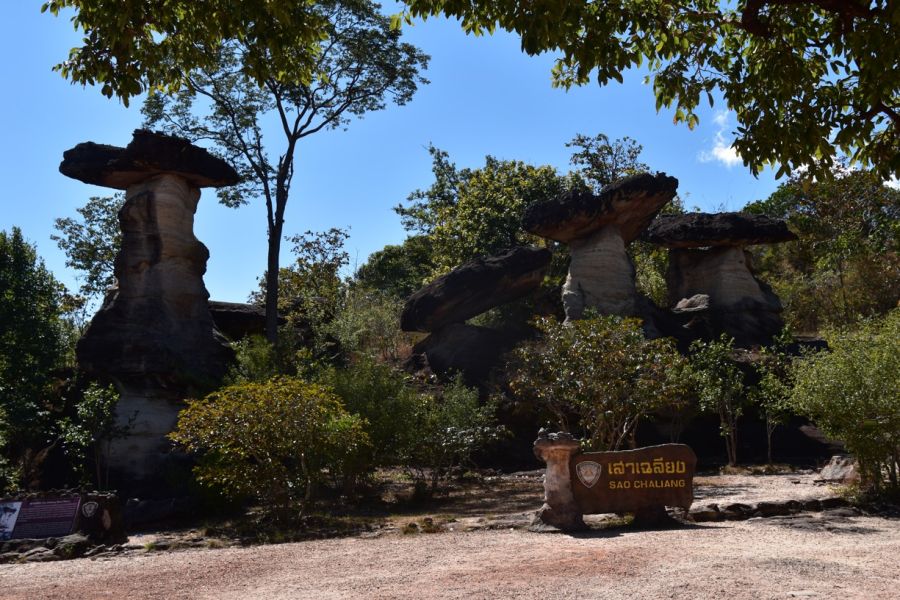 Ban Chiang (UNESCO) - archeologické naleziště v thajské provincii Udon Thani, proslulé červeně malovanou keramikou objevenou v roce 1966, nepřetržité osídlení od neolitické doby až po dobu železnou, první osadníci se věnovali zemědělství, umění zpracování kovů kolem roku 2000 př. n. l., klášter Wat Phu Thok - výstup na skalní pískovcový blok čnící z krajiny, 7 pater - 7 stupňů k probuzení, nádherné výhledy do okolí, visuté lávky, zpět do údolí Mekongu