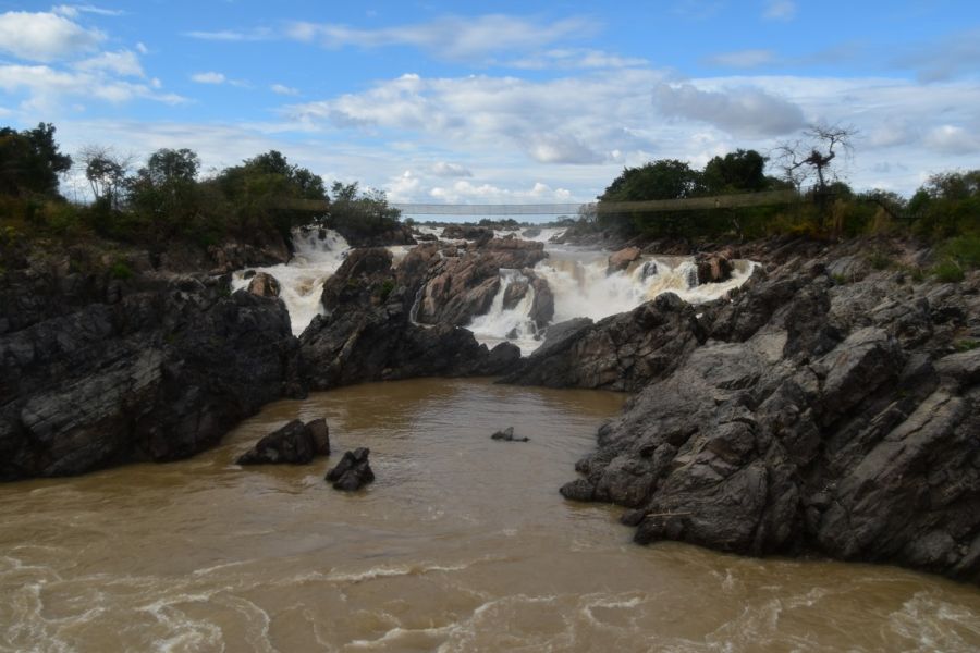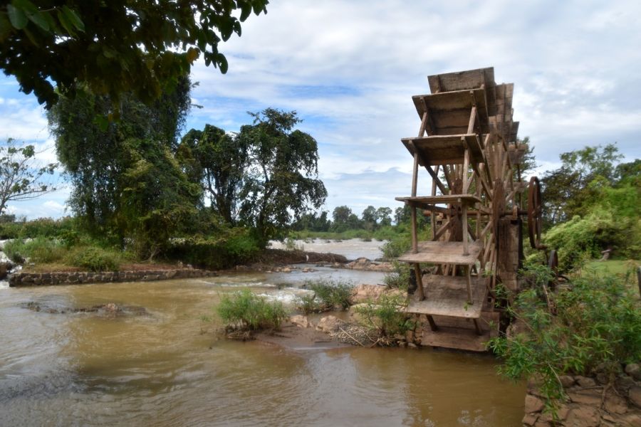 přejezd na jih do oblasti 4000 ostrovů na řece Mekongu - Si Phan Don - lehká turistika na kole (po rovině, cca 20 km) po ostrovech Don Khon a Don Det, peřeje, vodopády, staré lokomotivy jako pozůstatky po Francouzy vybudované železničce