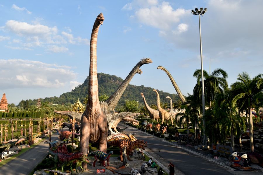 přejezd, Pattaya - Nong Nooch Tropical Botanical Garden - slouží i jako zábavní park se spoustou skulptur Buddhů, ale především modelů současných i prehistorických zvířat včetně všech 13 dinosaurů, jejichž pozůstatky byly objeveny na 2 lokalitách právě v oblasti Isanu, večer nábřežní promenáda a Walking Street s erotickými kluby