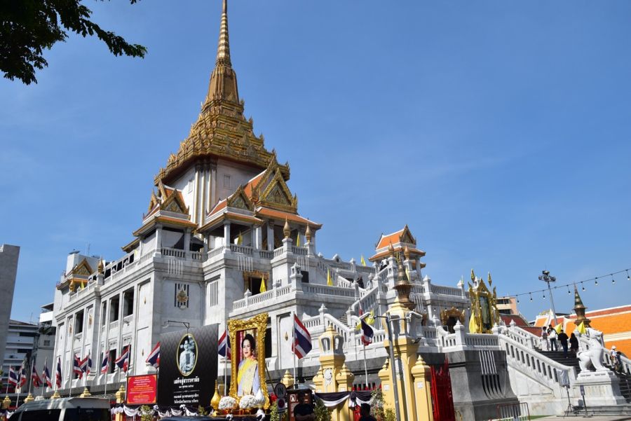 Bangkok - přes Sanam Luang (královská louka) k přístavišti, plavba rychlou lodí do Marine Department (cestou vyhlídka na Wat Arun), Chrám zlatého Buddhy - Wat Traimit, procházka Čínskou čtvrtí, busem k Wat Pho (Chrám ležícího Buddhy), dle zájmu prohlídka královského paláce, v nočních hodinách odlet